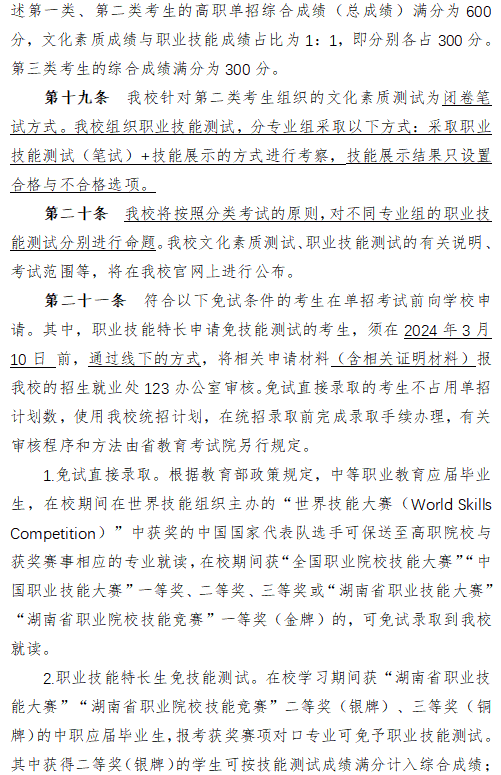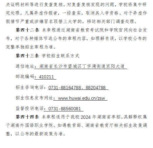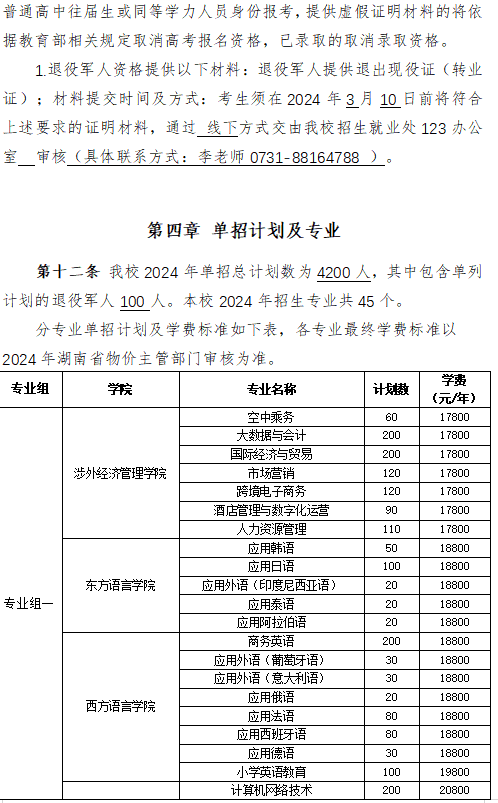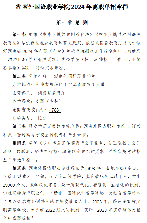 湖南外国语职业学院2024年高职单招章程
